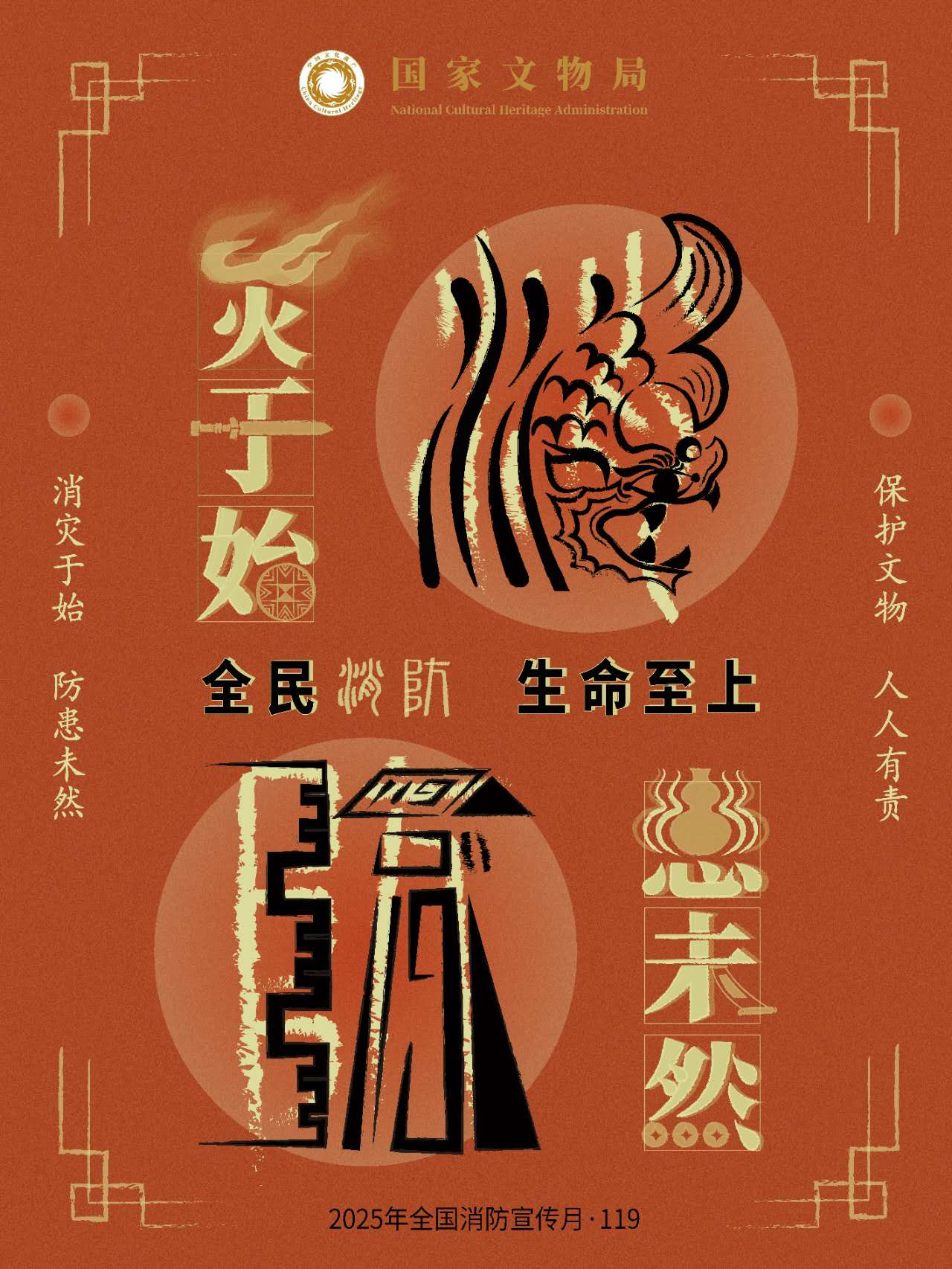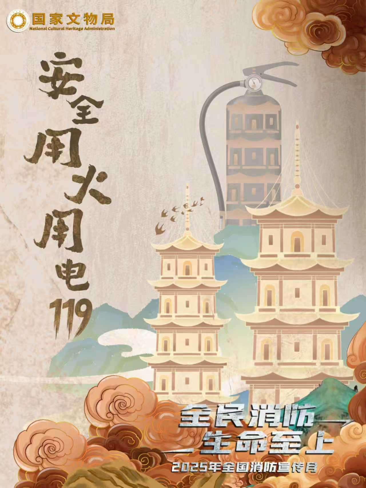 为落实国务院安全生产委员会关于开展2025年全国消防宣传月活动的有关要求,做好面向社会文物消防安全宣传工作,国家文物局开展了“2025年文物消防安全主题海报及安全隐患排查整治微视频作品征集活动”。活动自今年7月份启动以来,得到各地文物部门、消防救援机构,高校、科研院所,机关、企业及个人等积极响应,北京、上海、福建、山西等24个省(区、市)共报送海报作品90组(127幅)和微视频作品21部。围绕作品形式、元素风格、主题立意、原创性等要素,共推荐12幅/组海报、7个微视频作品作为今年文物消防宣传月推介作品,其中2幅海报、2个微视频作品为年度优秀作品,10幅/组海报、5个微视频作品为年度入围作品。活动紧紧围绕今年消防宣传月“全民消防、生命至上——安全用火用电”主题和文物消防安全实际,将消防安全与文物元素有机结合,突出文物消防安全特点,充分展示文物安全文化。现将作品公布如下: