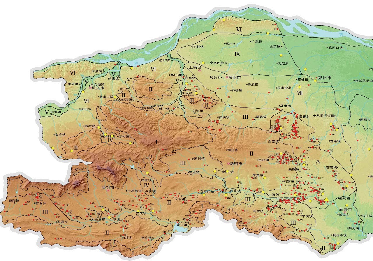 嵩山东麓旧石器、裴李岗遗址分布图