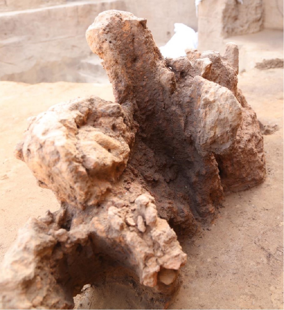 遗址东部发现一处多室式房址,东室火塘保存较好,底部平整,烧土面清晰;西室出土较多陶塑制品,其中的多个人面陶塑为首次发现;房屋周边灰坑分布稀疏,显示该建筑可能具有特殊功能。房子东南侧发现的红烧土柱和木骨泥墙遗存是目前所见年代最早的红烧土房屋证据之一,为研究仰韶时期红烧土建筑的起源提供了重要线索。