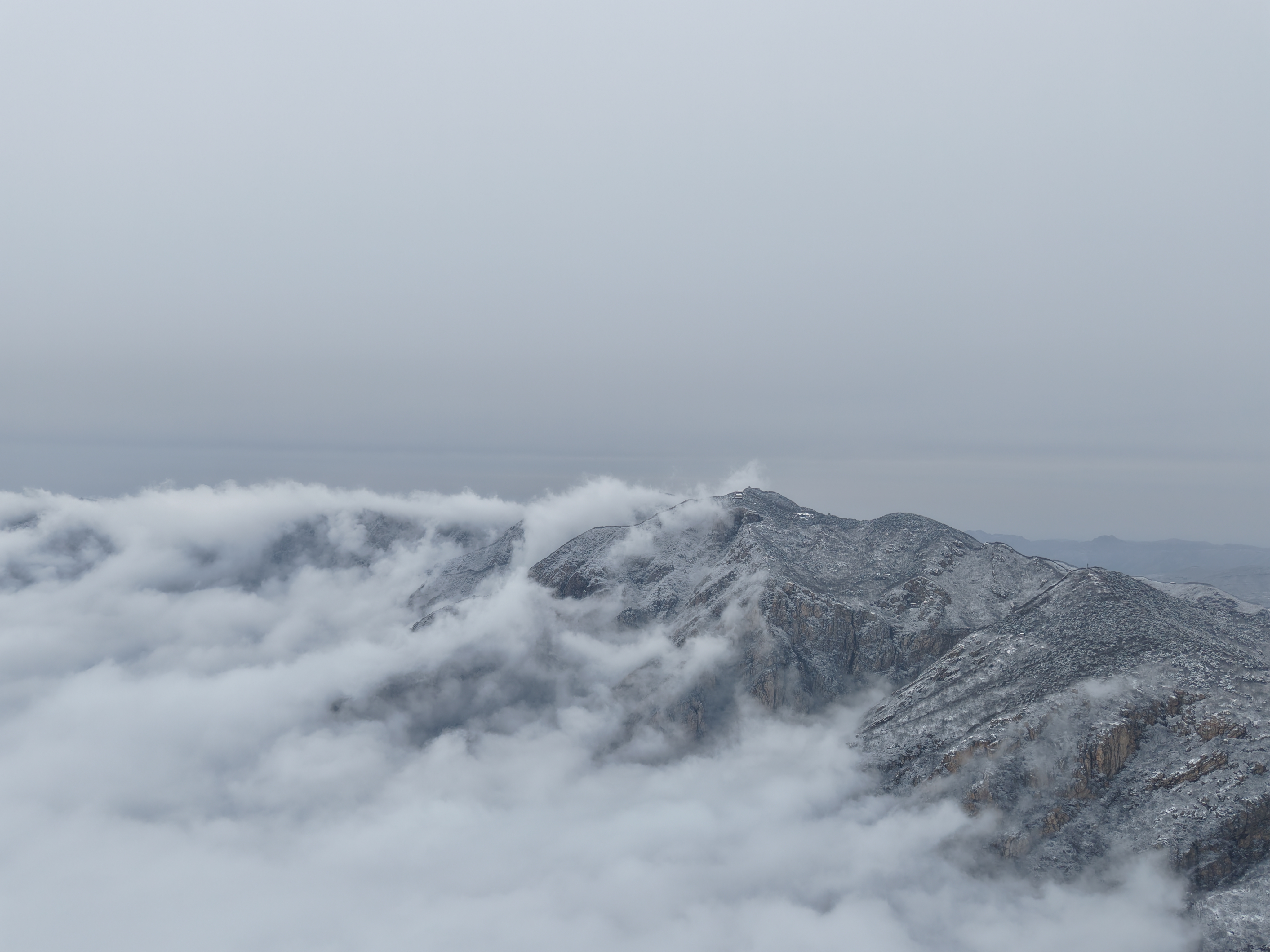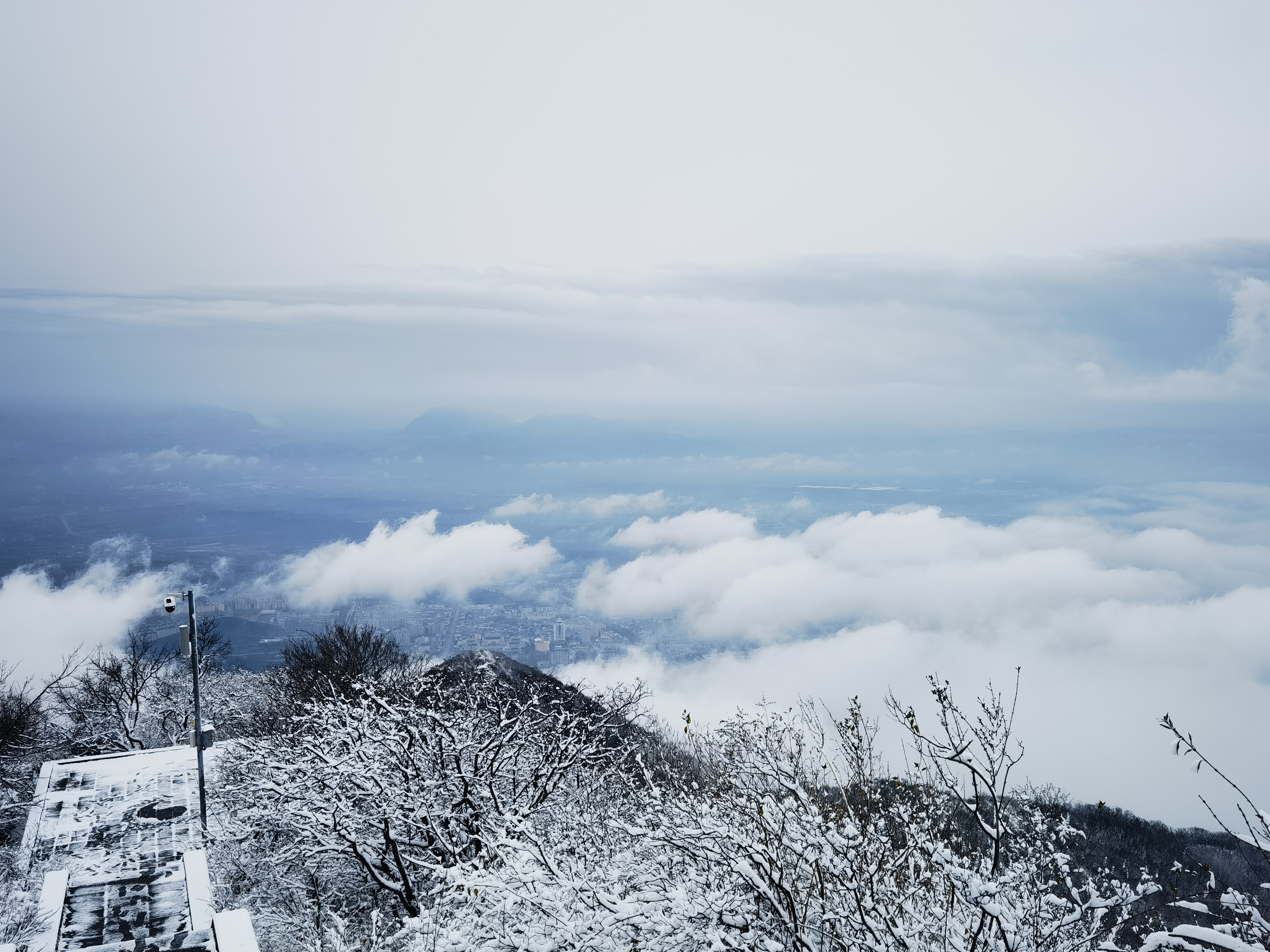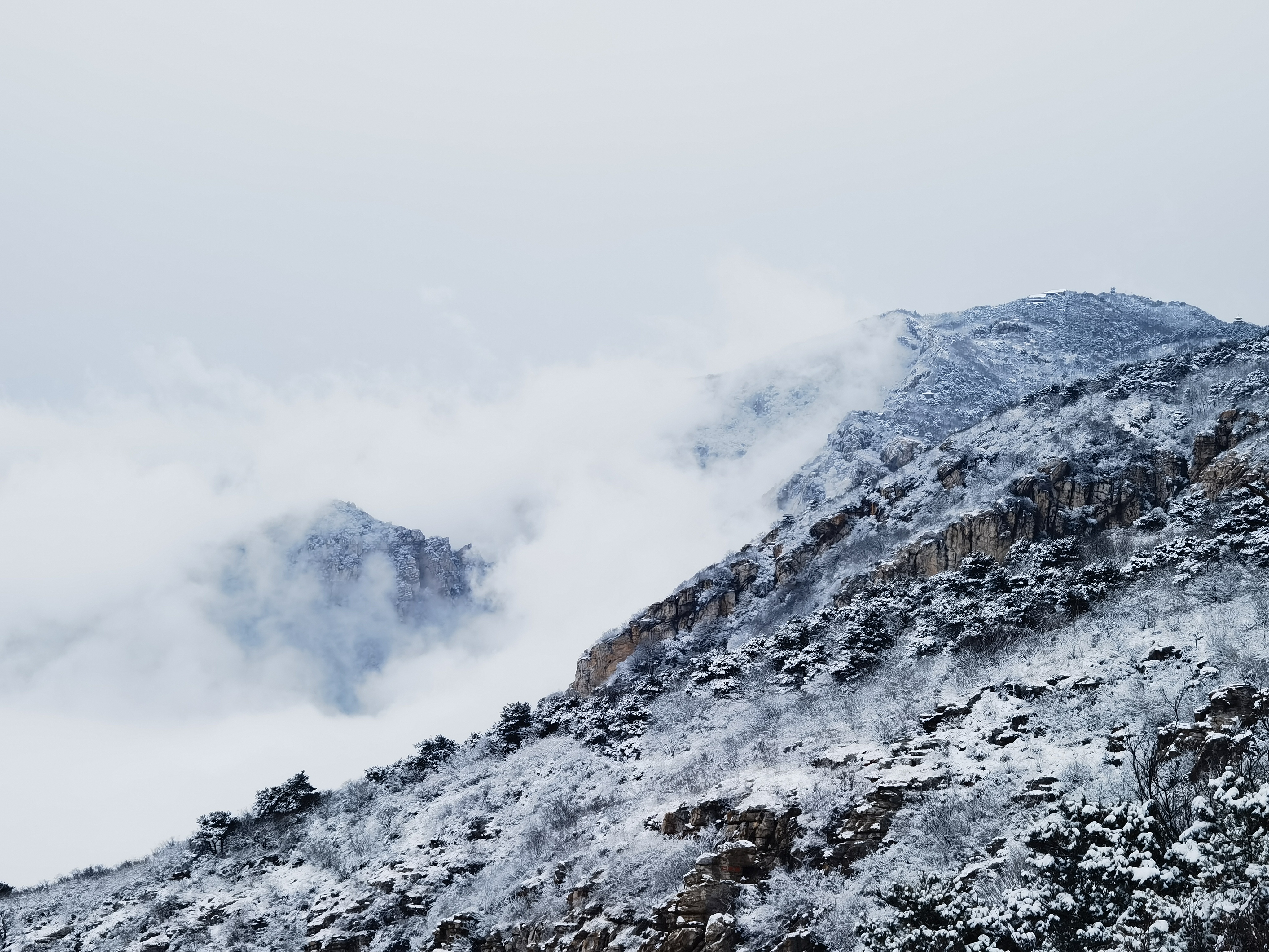 风怒卷,天向寒,天风呼啸雪花飞。山中飞舞的,除了雪花,还有云海——嵩山云海,拍击着山体,澎湃而壮观。