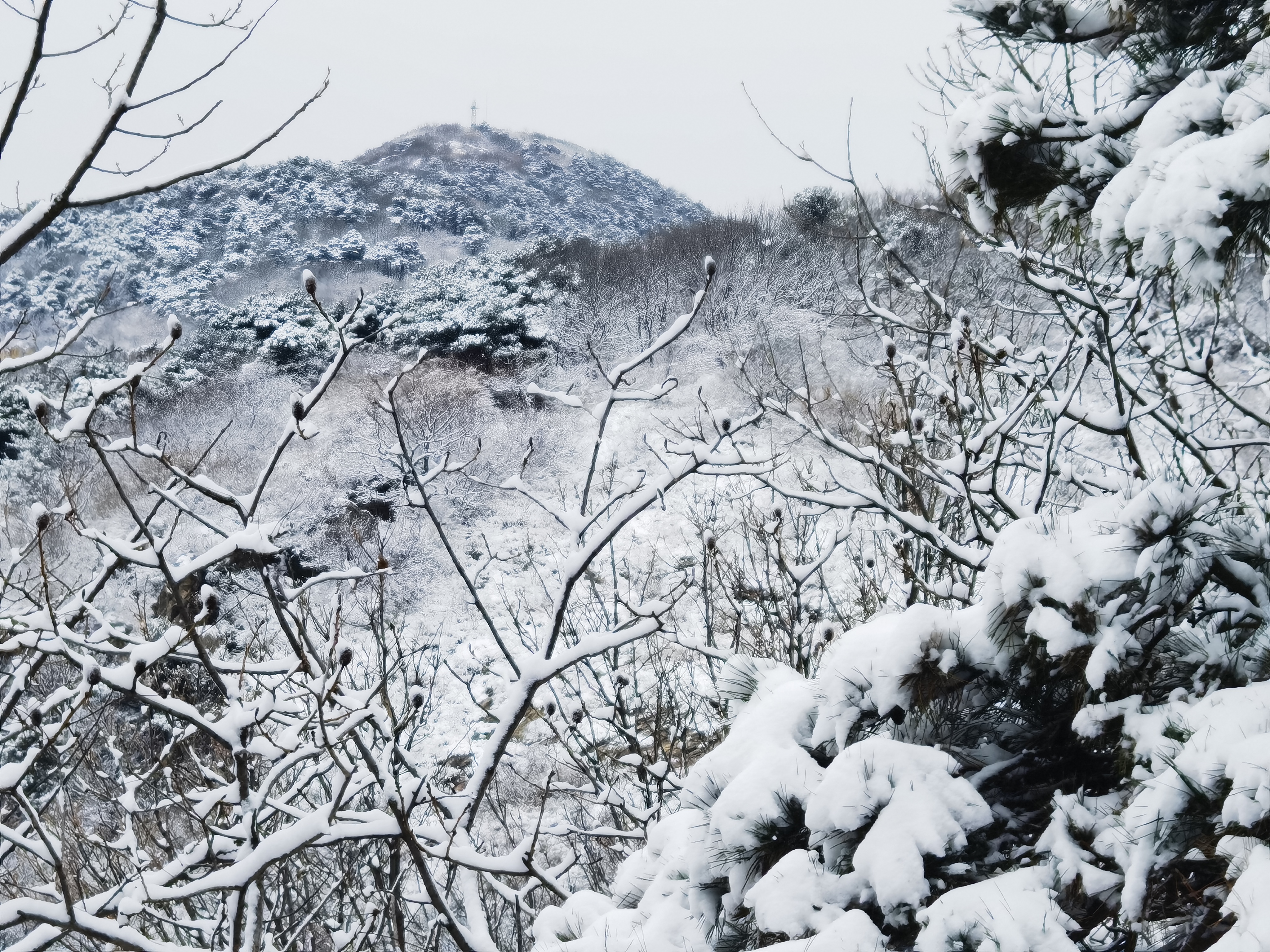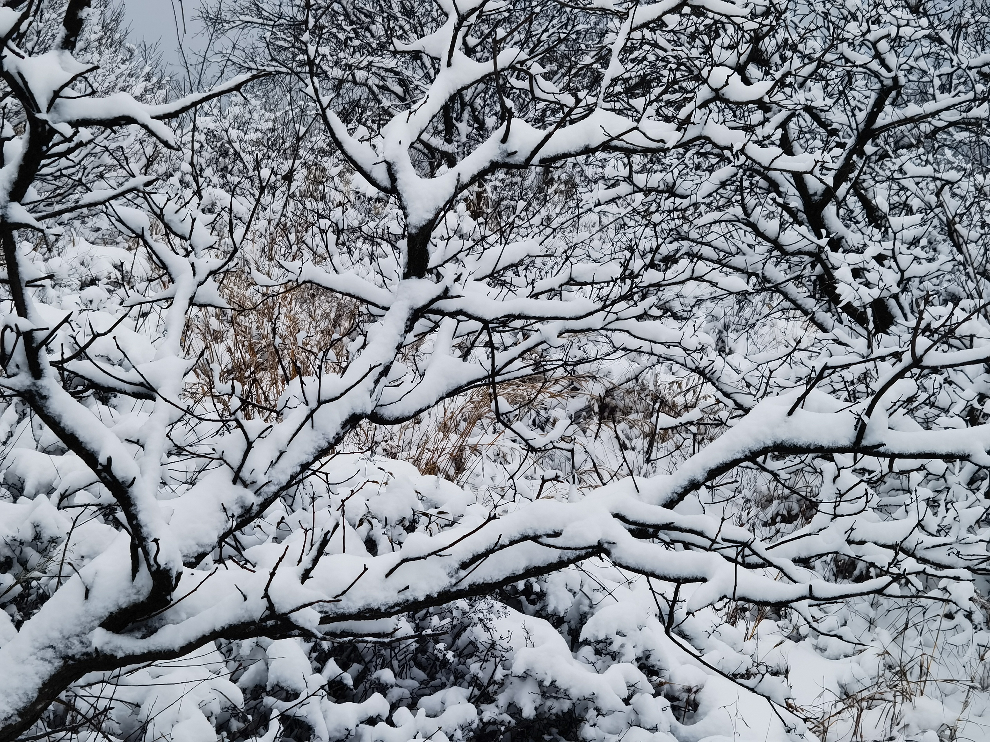 山巅之上,遍布积雪。高枝低草,肿了一圈;山坡岭脊,卧如冻狗。