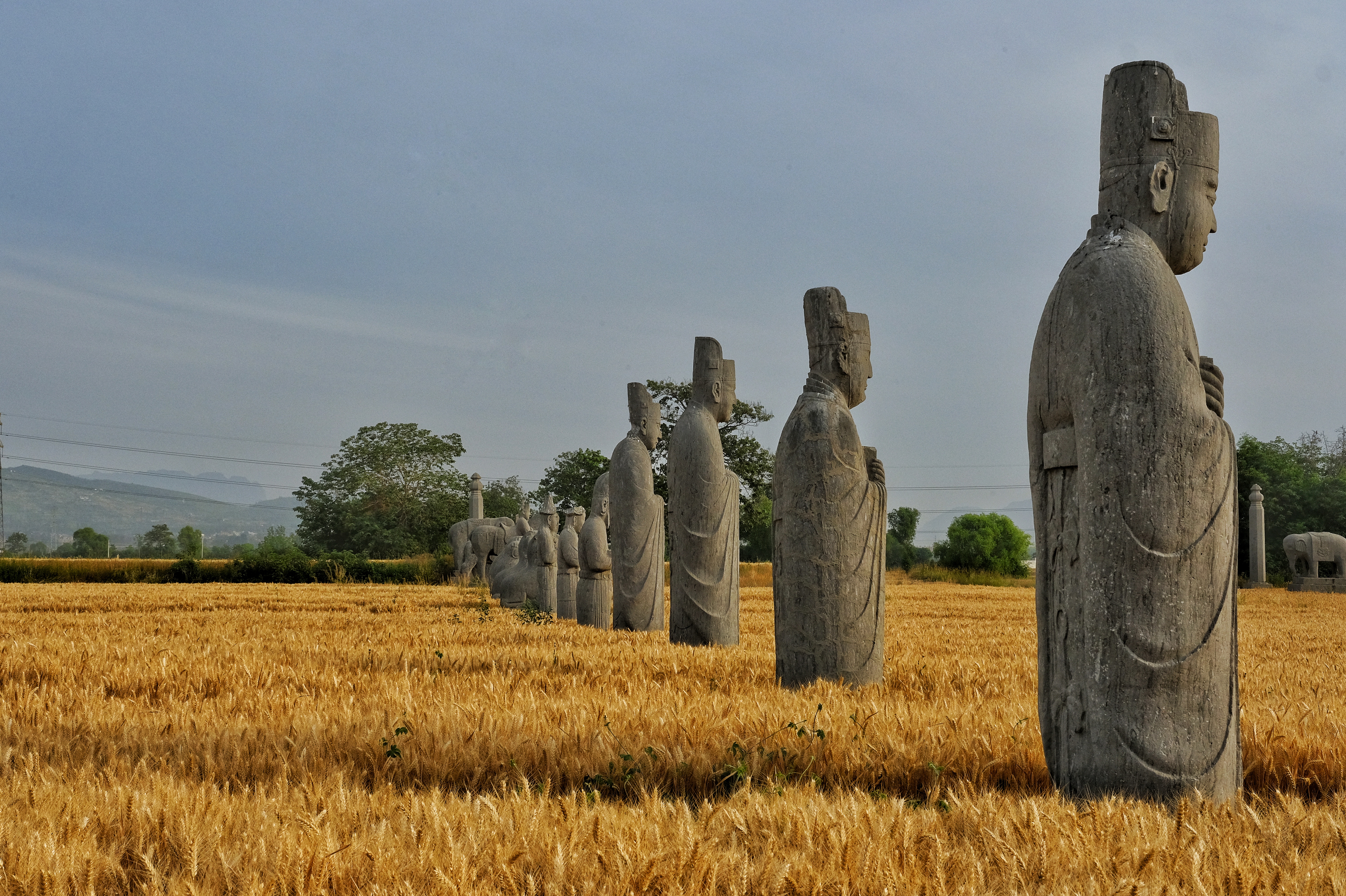 △麦田里的石像生(郑州市文物局供图)