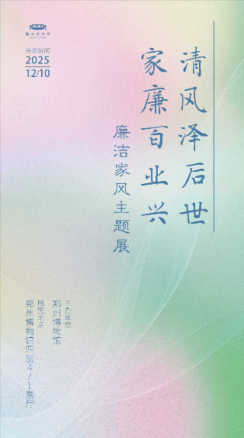 “天下之本在国,国之本在家。”家风,是流淌于家族血脉中的精神气质,无形中塑造着代代人的价值取向与行为准则。12月10日,郑州博物馆策划推出的“清风泽后世家廉百业兴——廉洁家风主题展”正式开展,开启一场贯通古今、融汇物与思的家风文化之旅。