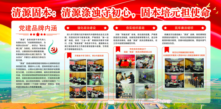 南水北调工程建设与运行的每一步,都离不开“清水”的守护,更离不开廉洁的保障。“清渠”党建品牌正是对这份精神的传承与升华,以南水北调的“一渠清水”为喻,象征党员干部的清正本色;以工程建设中的廉洁基因为根,传递“不越雷池、不踩红线”的廉政理念,让“清”的追求深植每一位从业者心中。