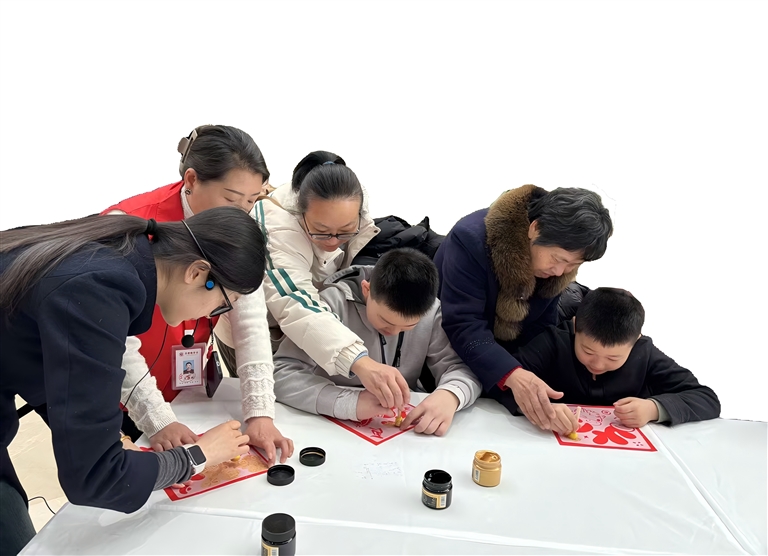 画笔在大人与孩子的手中传递,古老的饕餮纹被添上一抹朱红。素不相识的游客们共同完成了独一无二的新春集体创作。